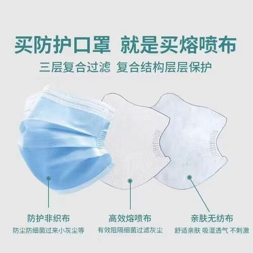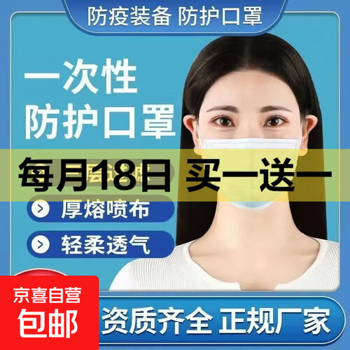 - 【夯爆了】一次性口罩无纺布防尘防唾沫口罩三层防护透气舒适不勒耳 一次性口罩1包*50片(50片)