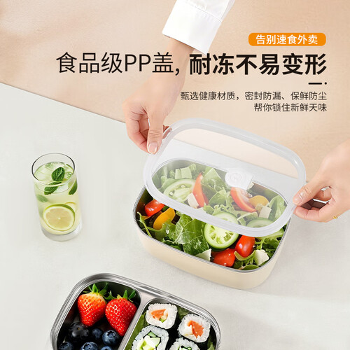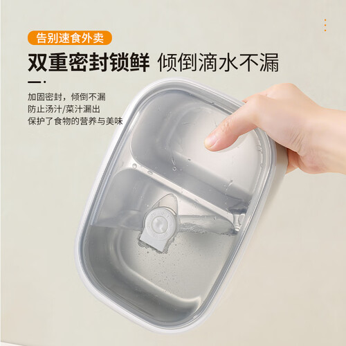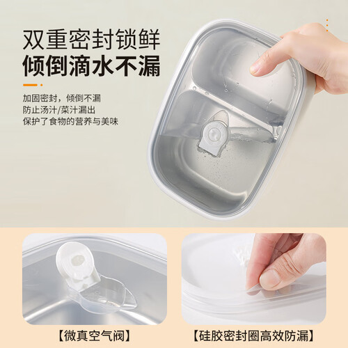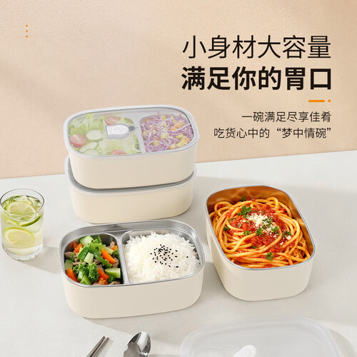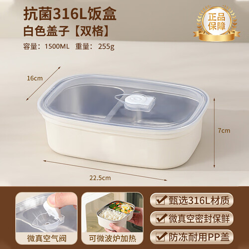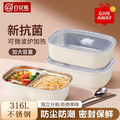 - 百亿熊316L不锈钢分隔饭盒抗菌上班族学生带饭微波炉加热便当餐盒多层 双格 1500ml