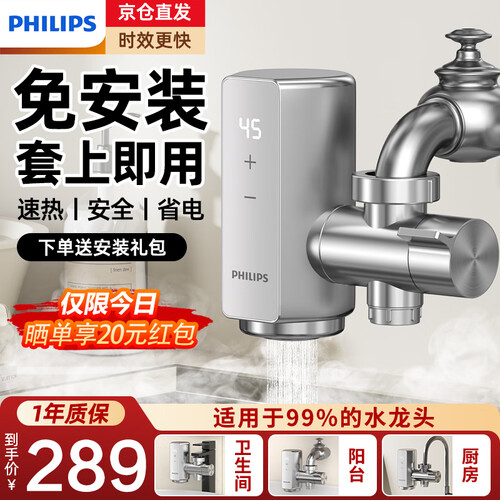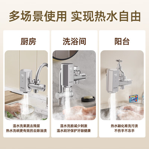 - 飞利浦电热水龙头苏即热式泊变频恒温尔免安装套上即用接驳小型家用卫生间厨房速热热水器小厨宝1156 变频款+漏保