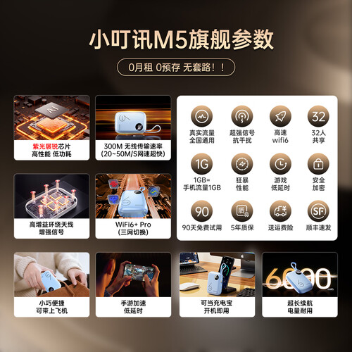 - 小叮讯【3C认证可上飞机】移动随身wifi5g无限流量2025款无线网随身wifi充电宝二合一免插卡网络车载户外 【升级旗舰款】三网通|6000毫安充电款*超长续航 0月租 无预存 随用随充