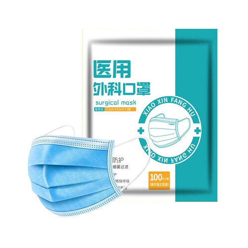 - 新日期医用外科口罩独立包装含熔喷防护3层薄款防细菌防飞沫防尘 100片/袋(每片独立包装)