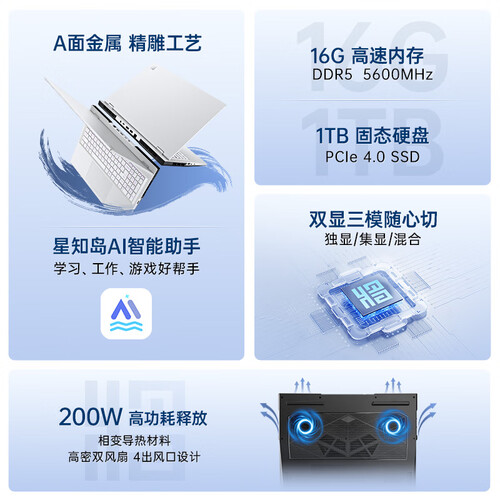 七彩虹(Colorful)将星X16 Pro 14代酷睿i5 16英寸游戏笔记本电脑( i5-14450HX 16G 1T RTX5060 180Hz)
