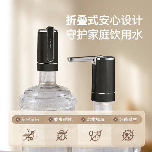 - 奥克斯抽水器桶装水电动压水器自动吸水器矿泉水上水器饮水机大桶水抽水泵取水器 【耀钻黑】3档升级泵+折叠卫生