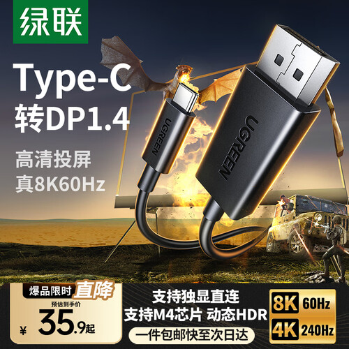 - 绿联Type-C转DP1.4转接头投屏转换器线8K60Hz 4K240Hz适用 IPhone macmini ipad air 笔记本电脑 8K60Hz【热卖款】 1米