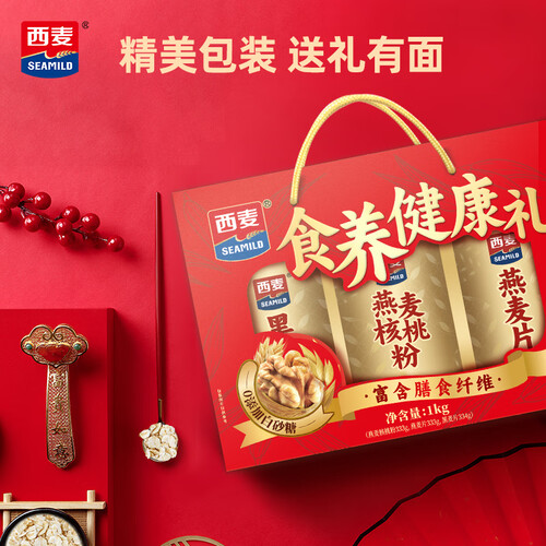 - 西麦食养健康礼盒1000g黑麦核桃粉燕麦片代餐营养早餐过年送长辈佳品