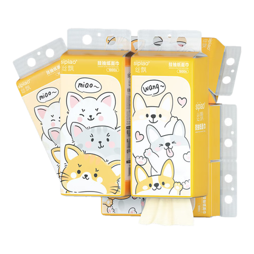 - 【百万销量】萌宠来袭1000张悬挂式抽纸餐巾纸本色卫生纸4层加厚 4层 1000张 2提