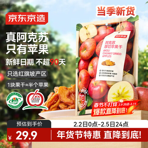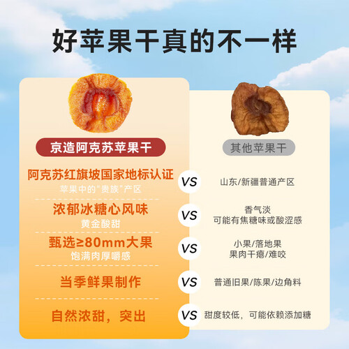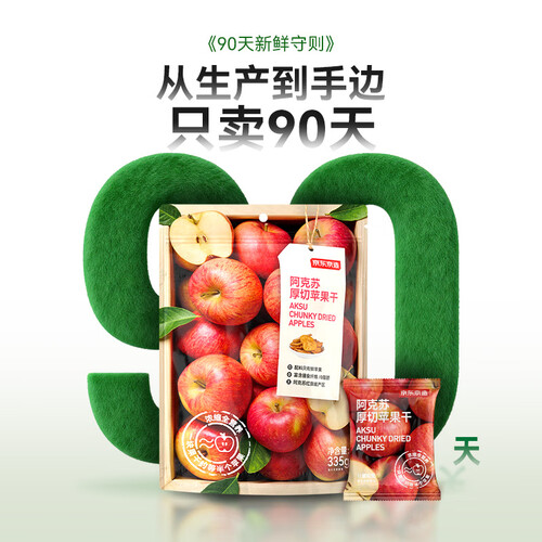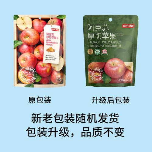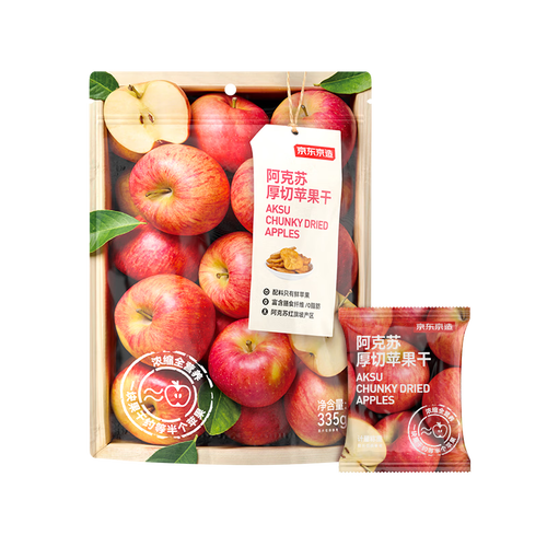 京东京造阿克苏厚切苹果干335g 三蒸三晒无添加独立包装儿童新疆健康零食