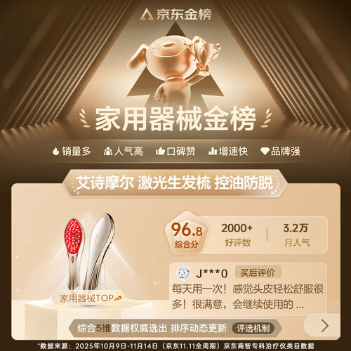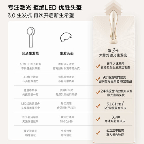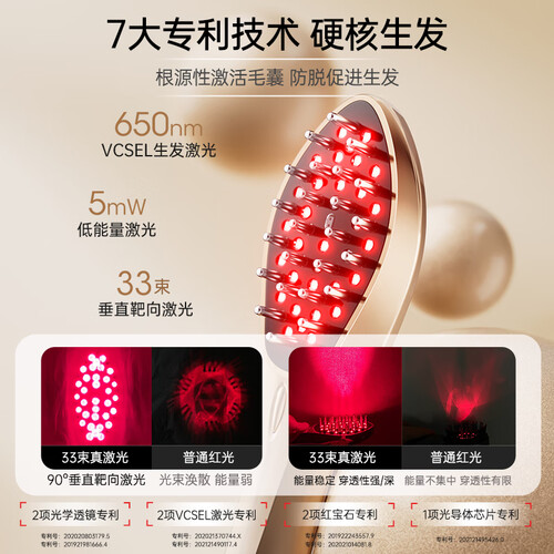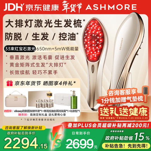艾诗摩尔(ASHMORE)激光生发仪红光健生发梳电动按摩梳器头皮控油年货礼盒 AS-SF03