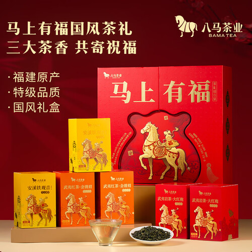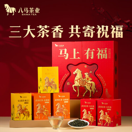 八马茶业 组合茶叶礼盒 红茶金骏眉/大红袍/肉桂/铁观音/白茶/冰岛普洱 【金骏眉/大红袍/铁观音】248g