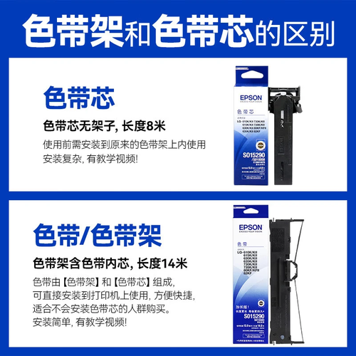 爱普生(EPSON)原装色带LQ-630k 610K LQ-615K 615KII 635K 730K 735K 80kf 82kf 针式打印机S015290带框黑色带芯 色带架/框【安装方便 装机即用】