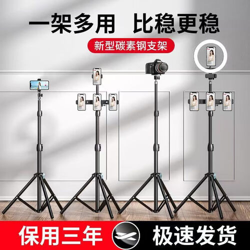 - 【加长2.1米】手机支架直播支架落地自拍三脚架直播网课立式折叠支架可伸缩 录视频拍照专业户外 亮黑2.1米超高套装(支架+云台+手机夹)-推荐款