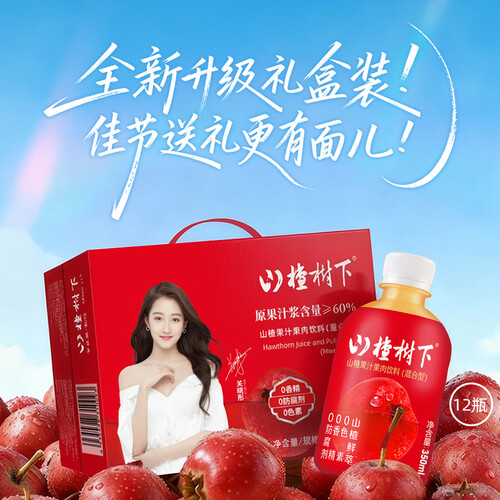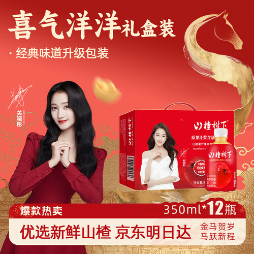 - 冠芳山楂树下山楂汁饮料350mlx12瓶果汁年货新年超市送礼礼盒装
