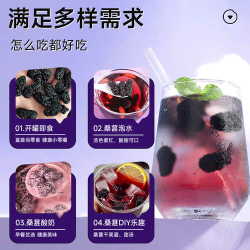 古茶养仁正宗新疆桑葚干黑桑椹干特级免洗精选大果无沙即食泡水养生喝500g