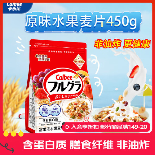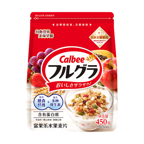 - 卡乐比(Calbee)即食燕麦片 原味水果麦片450克 日本进口非油炸 早餐代餐年货零食