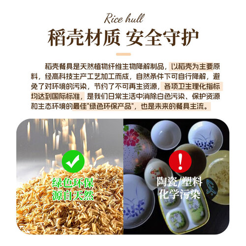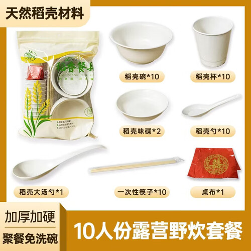 - 稻壳一次性餐具碗筷套装勺杯子十人份聚餐家用酒席商用野餐七件套 十人份套装【1包】绿色包装