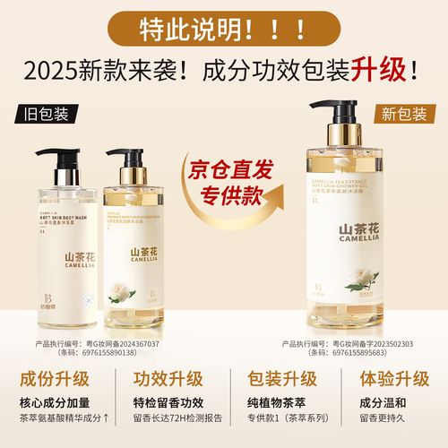 - 倍膳健山茶花氨基酸沐浴露1L除螨抑菌留香持久滋润保湿乳液男女士金榜