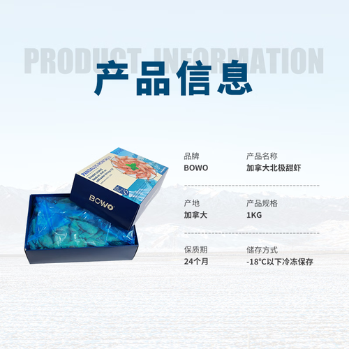 - BOWO铂沃北极甜虾120-170只(买1赠1)共净重4斤解冻即食年货节礼盒