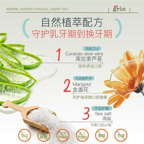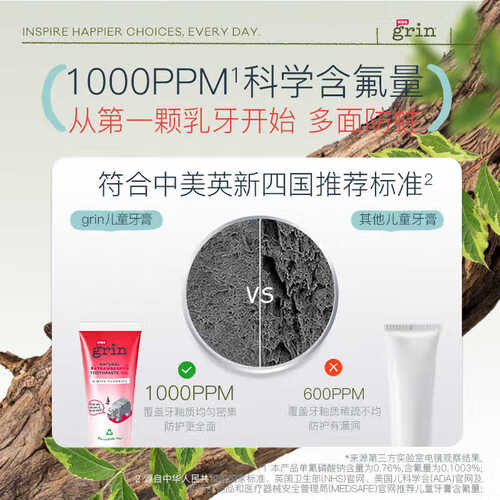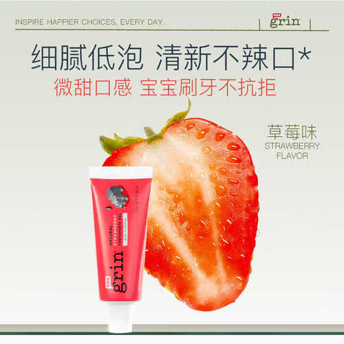 - grin儿童进口牙膏含氟防蛀1支10g草莓味3-6-12岁宝宝青少年牙膏