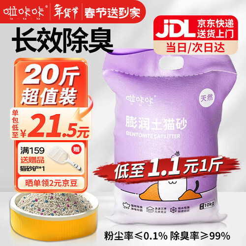 - 啦咔咔猫砂膨润土低尘除味结团猫砂猫咪用品几乎无尘猫砂 原味【京东上门次日达】20斤
