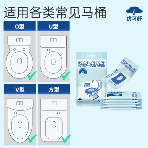 - 优可舒一次性马桶垫10片 独立包装便携隔脏马桶套坐便垫旅行旅游坐垫纸