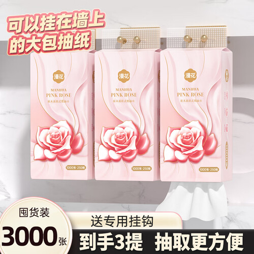 漫花挂式抽纸大包纸巾家庭实惠装卫生间厕所挂壁式家用卫生纸悬挂厕纸 4层 1000张*3提 【赠挂钩】