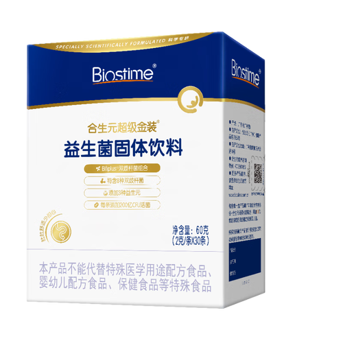 - 合生元(BIOSTIME)全新升级第二代超金菌益生菌婴儿双歧杆菌呵护肠胃改善肠道 30袋