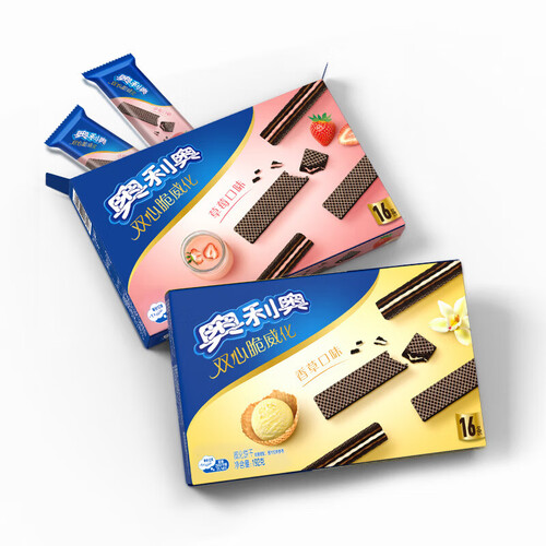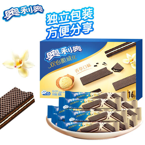 - 奥利奥(Oreo)双心脆威化饼干 香草味 192g 办公室休闲零食早餐 下午茶16条装