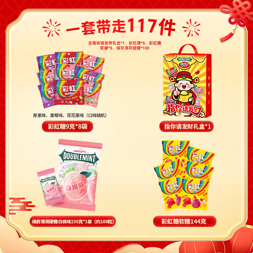 绿箭 彩虹糖指你请发财礼盒约446g 休闲零食糖果 年货礼盒新年礼盒