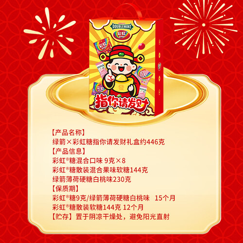 - 绿箭 彩虹糖指你请发财礼盒约446g 休闲零食糖果 年货礼盒新年礼盒