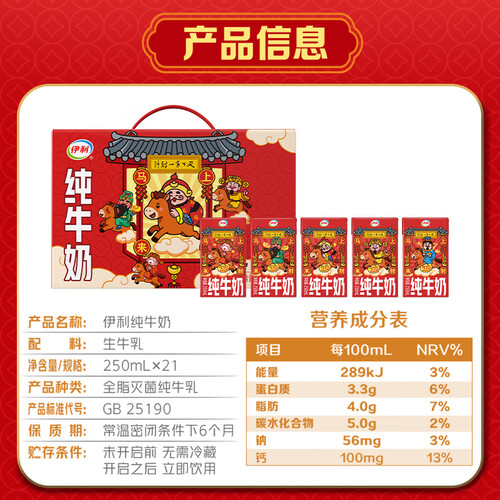 伊利【限定财神装】纯牛奶250ml*21盒/箱 送礼 年货礼盒