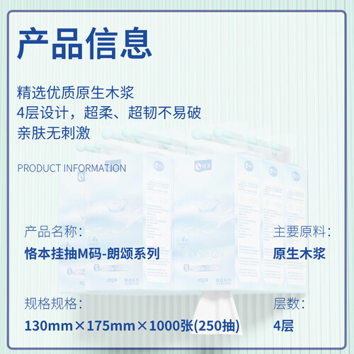 - 恪本挂式抽纸 优等品4层加厚成人婴童通用175*130mm 4提*250抽