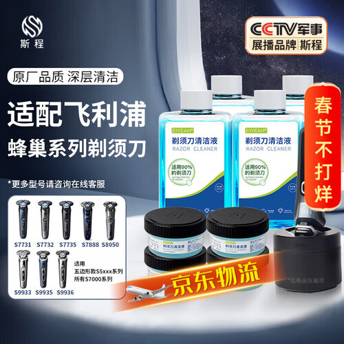 - 斯程适配飞利浦剃须刀清洁液替换装适用S7系/S8系/S9系高端系列刮胡刀 S7731/8050/9936通用清洗液CC13 品质|蜂巢系列专用清洗液4瓶+4瓶补充液