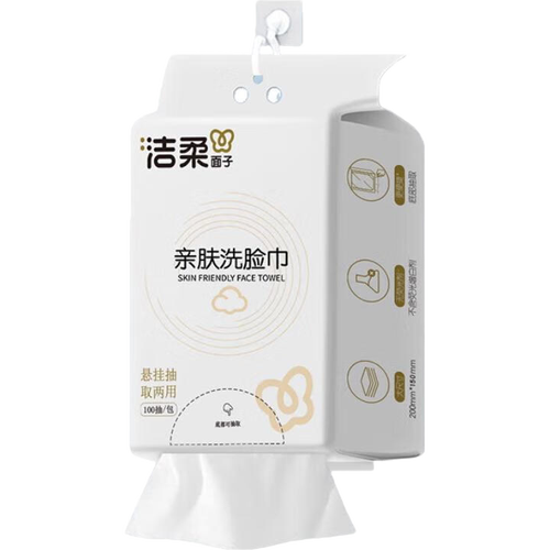- 洁柔一次性洗脸巾婴儿柔巾加大加厚干湿两用悬挂式洁面巾 100抽 1包【平纹亲肤 挂抽两用】