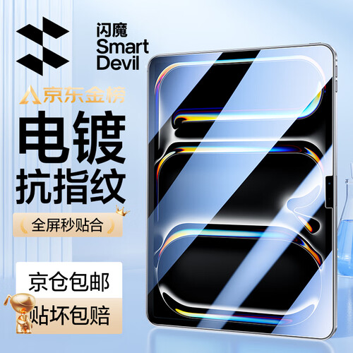 - 闪魔适用iPad pro钢化膜2025/24/21/22款air7/6/5/4保护膜11/12.9/13英寸高清抗蓝光平板膜 【加强版电镀双倍抗指纹】 2018/20/21/22款 pro 11英寸