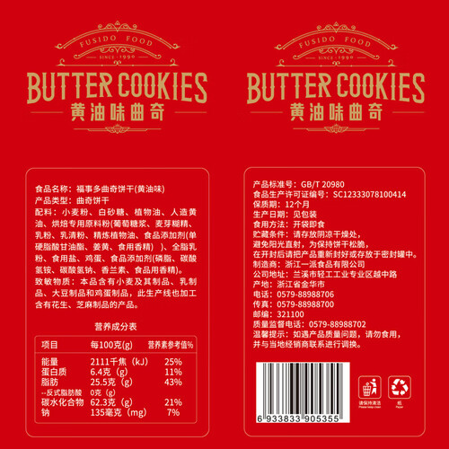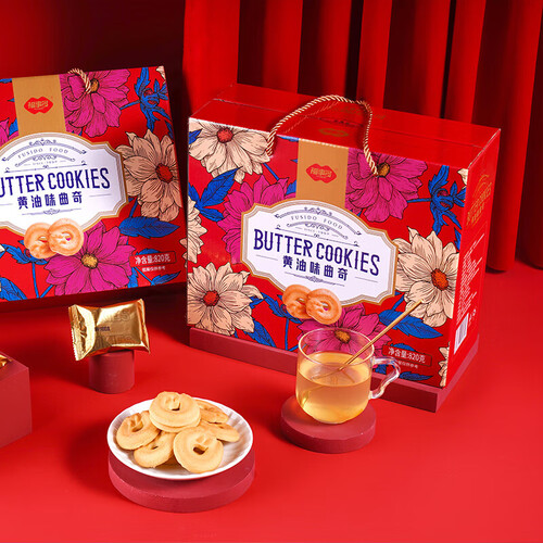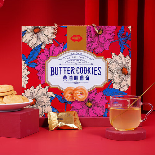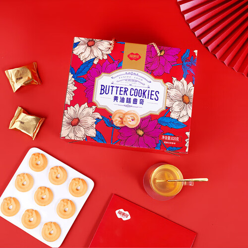 - 曲奇饼干礼盒820g早餐休闲零食代餐饱腹年货送礼独立包装曲奇饼干 福事多曲奇饼干礼盒820g 红色款*2盒