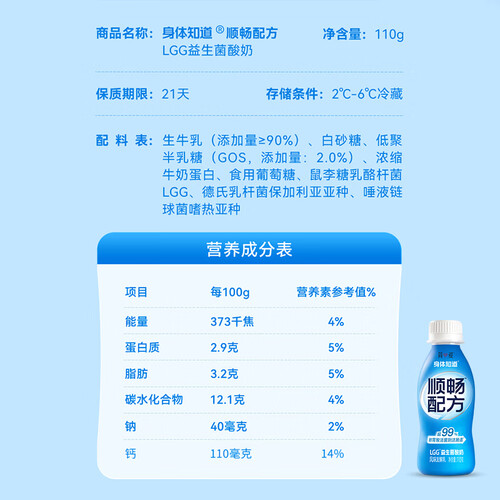 简爱顺畅配方酸奶110g*4瓶 LGG益生菌GOS益生元膳食纤维 餐后顺畅