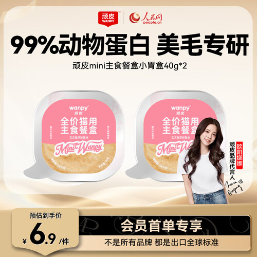 顽皮(Wanpy)猫罐头三文鱼磷虾主食餐盒罐40g*2 美毛猫湿粮宠物食品幼猫试吃