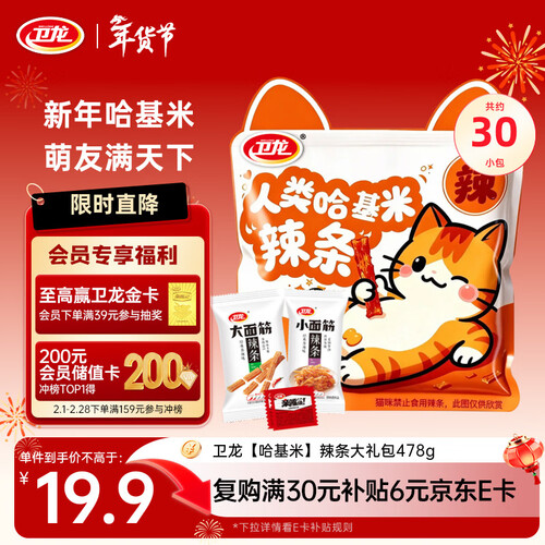 - 卫龙 辣条 大小面筋 亲嘴烧 【哈基米】休闲零食大礼包478g年货节团购