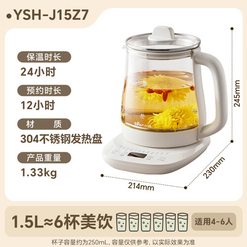 - 小熊(Bear)养生壶 煮茶壶 恒温水壶 保温烧水一体智能电热水壶花茶壶烧水壶 11档保温 1.5L大容量 YSH-J15Z7