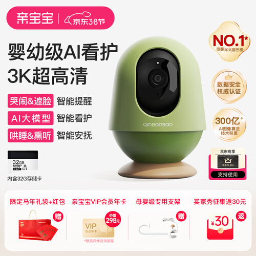 亲宝宝AI智能看护器婴儿监护器家用监控哭声宝宝床摄像头看娃神器32G
