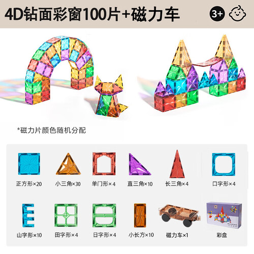 布鲁奇钻面彩窗磁力片儿童玩具男孩3-6岁磁力积木益智玩具1-3岁生日礼物