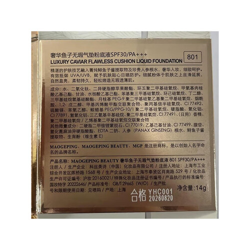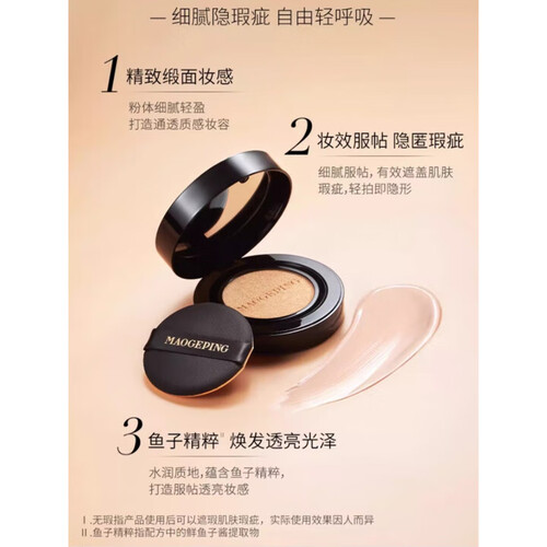- 毛戈平(MAOGEPING)801白皙色鱼子酱气垫粉底液14g+替换装14g遮瑕控油【临期清仓】