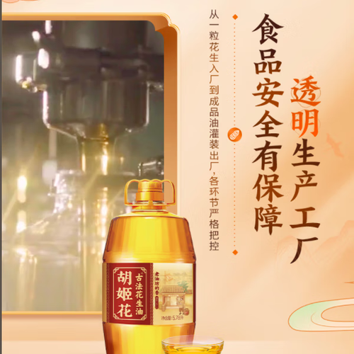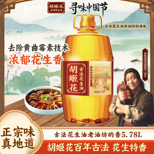 - 胡姬花食用油 【保真花生油】老油坊的香 压榨一级 5.78L