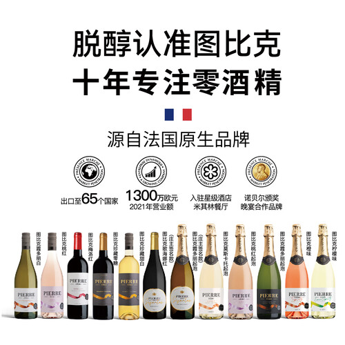 - 图比克法国原瓶进口梅洛美乐脱醇红葡萄酒0酒精无醇0度红酒750ml*6瓶