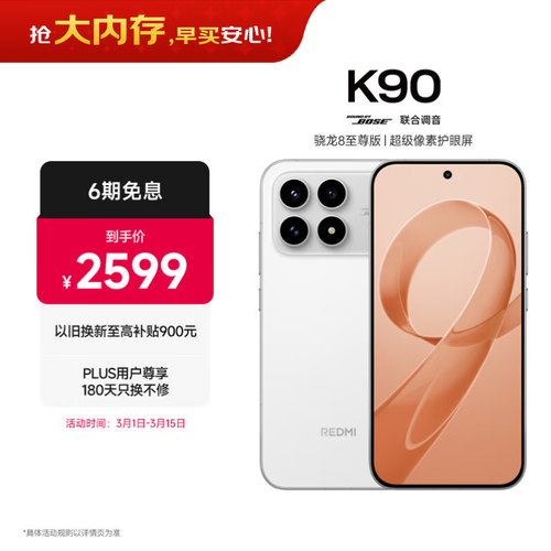 小米REDMI K90 骁龙®8至尊版 7100mAh大电池 青山护眼 白色 12GB+256GB 红米5G手机国家补贴