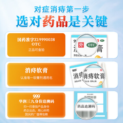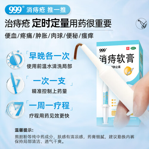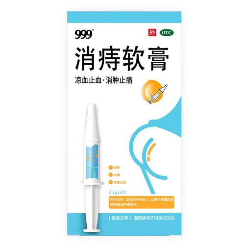 三九医药 999消痔软膏2.5g*6支/盒 痔疮膏 红肿疼痛 肛周瘙痒 内外痔混合痔 便秘便血痔疮药