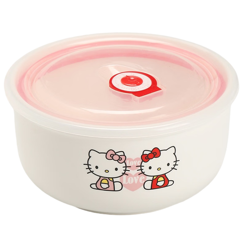 带盖泡面碗陶瓷保鲜碗 学生微波炉专用沙拉碗卡通泡面碗 保鲜碗6寸(花色随机)