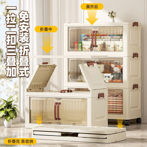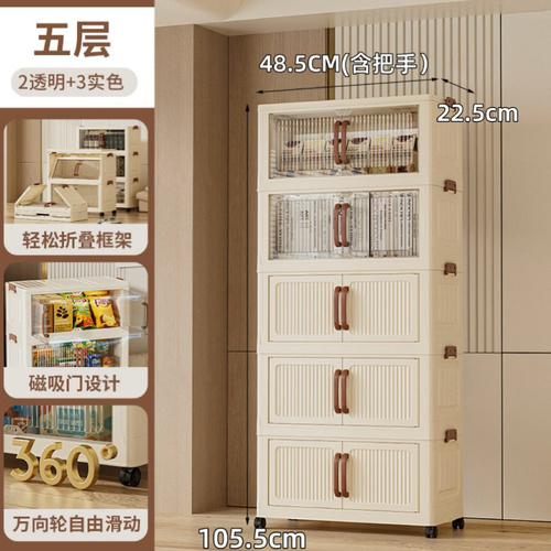 简易衣柜衣服置物柜家用多层移动收纳架客厅折叠储物柜租房储物柜 随机色·1层【不带轮】 48.5面宽