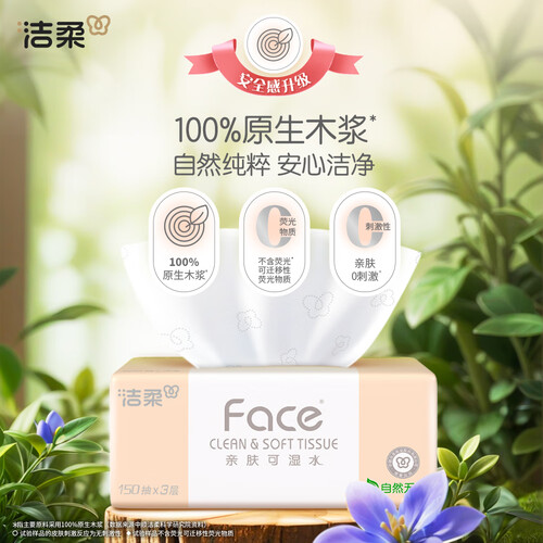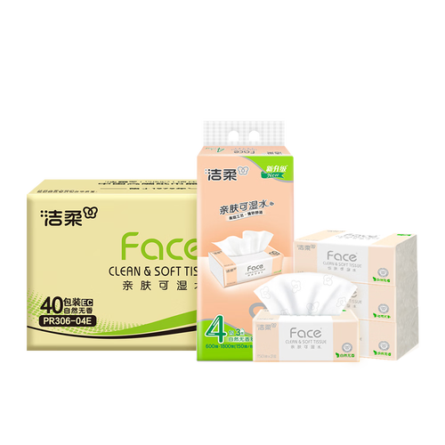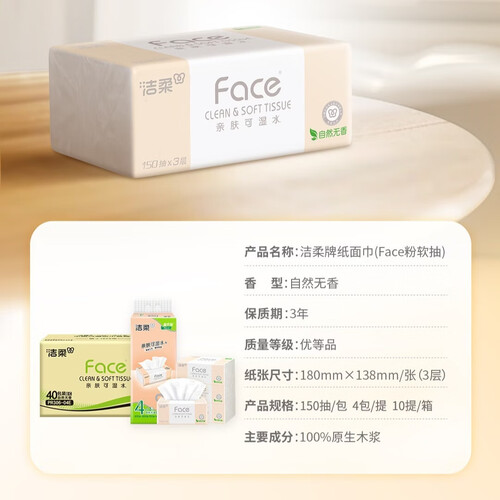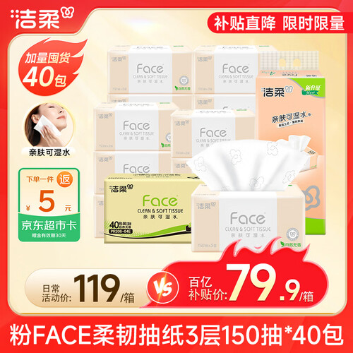 洁柔抽纸 粉Face柔韧3层150抽*40包 可湿水纸巾卫生纸 抽纸整箱