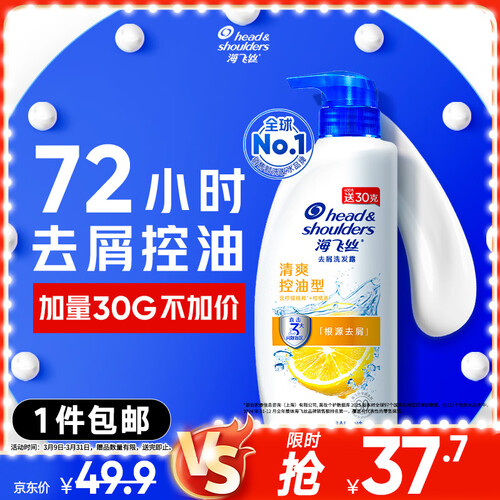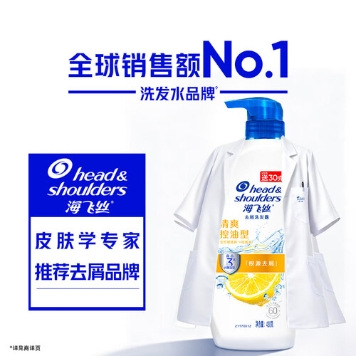 海飞丝去屑洗发水男士女士清爽去油430g洗头膏洗发露洗发液控油蓬松